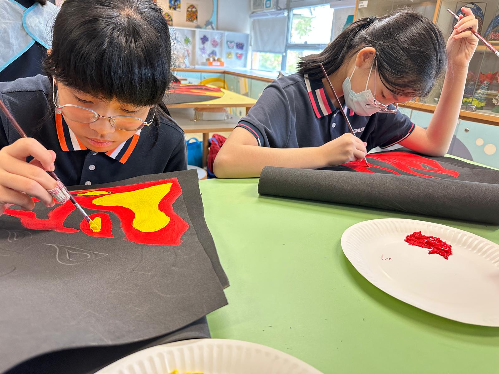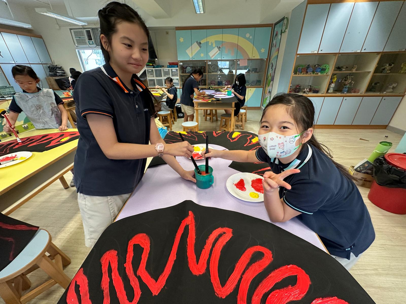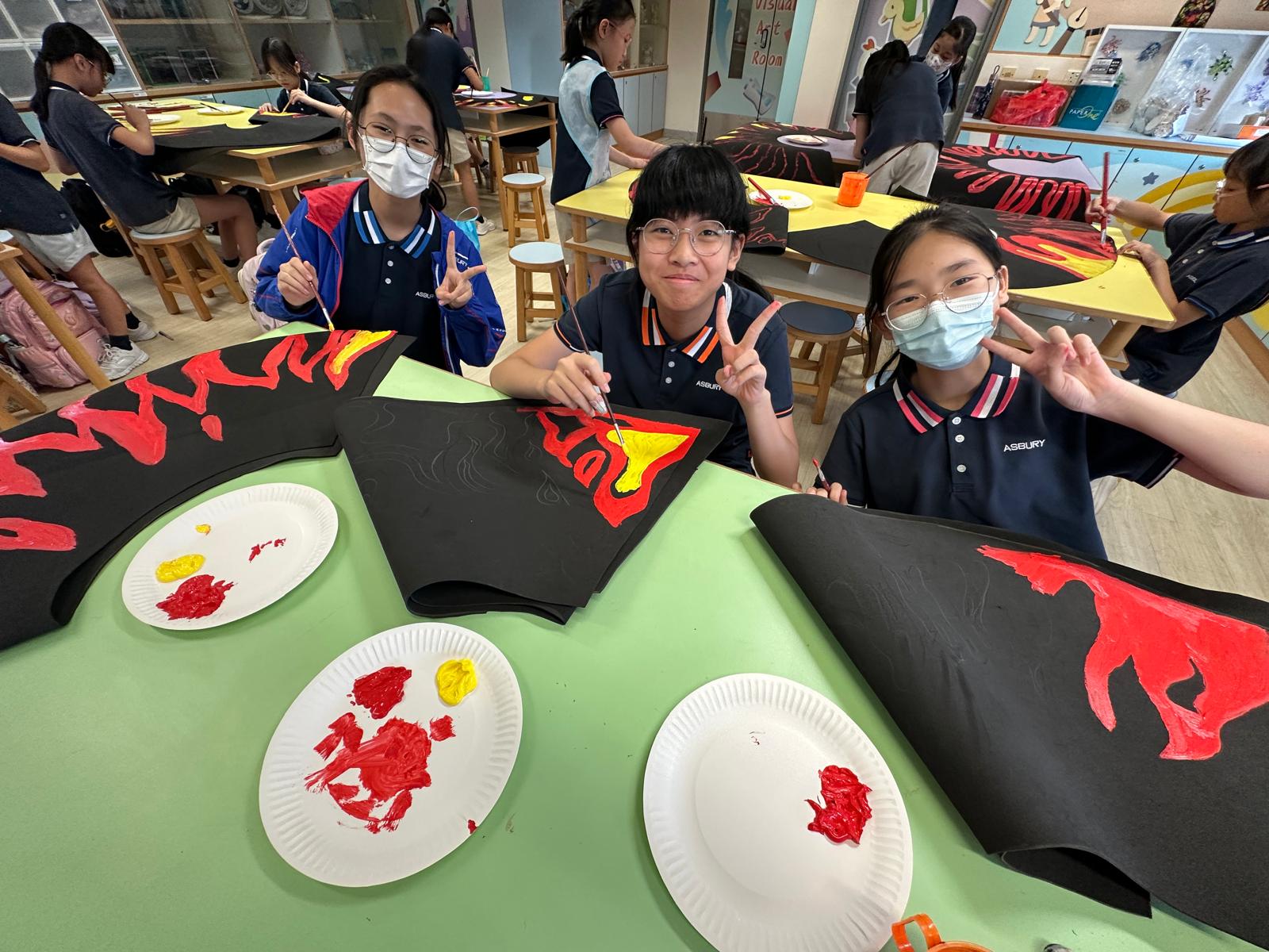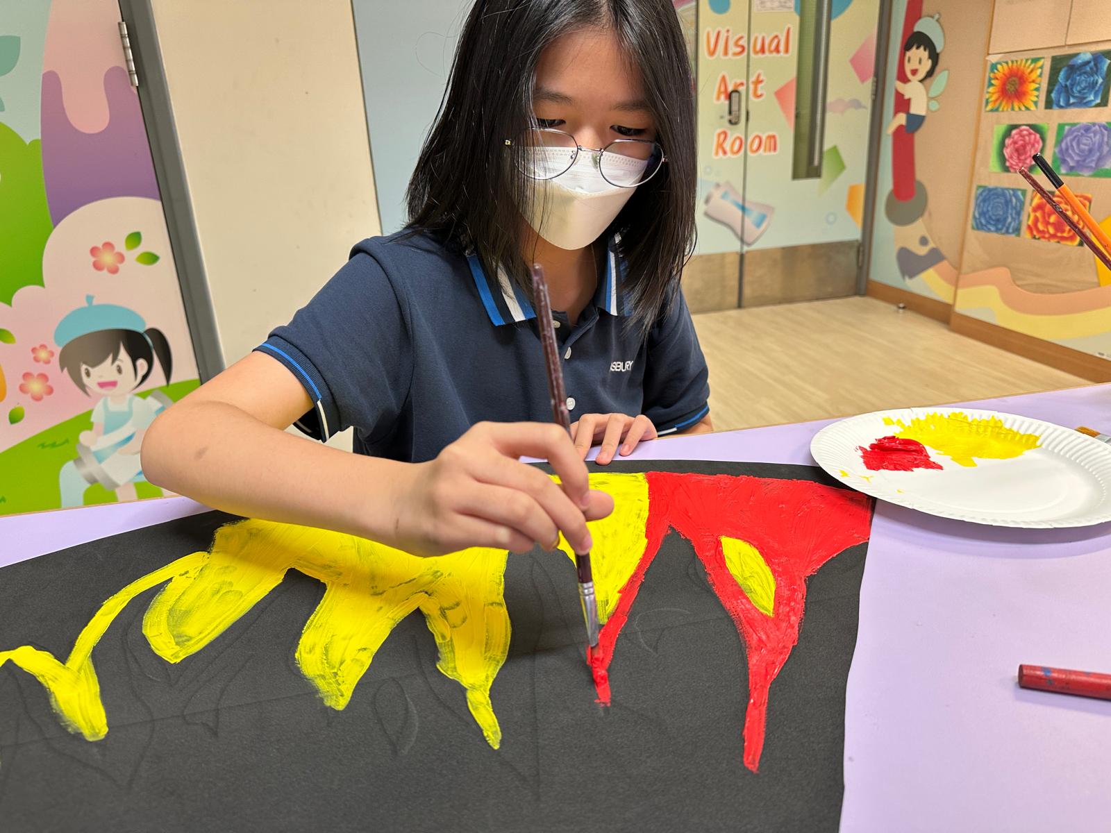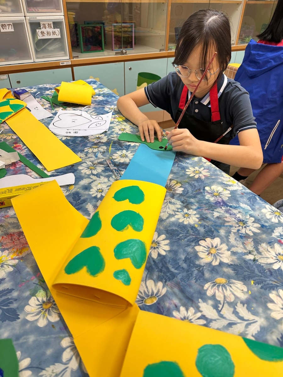 於藝術週內,校園滿佈豐富的作品,同學彷彿進入了奇趣的故事空間,觀摩彼此創作時的線條運用及用色技巧。