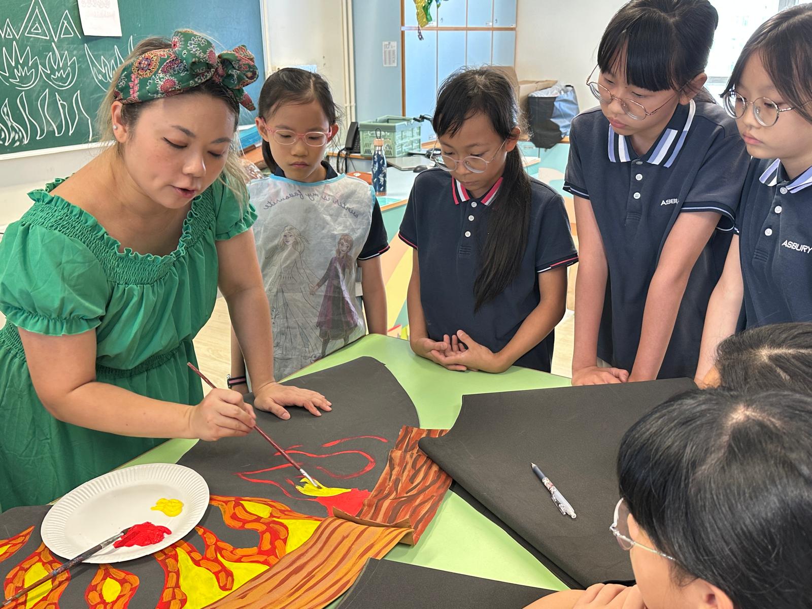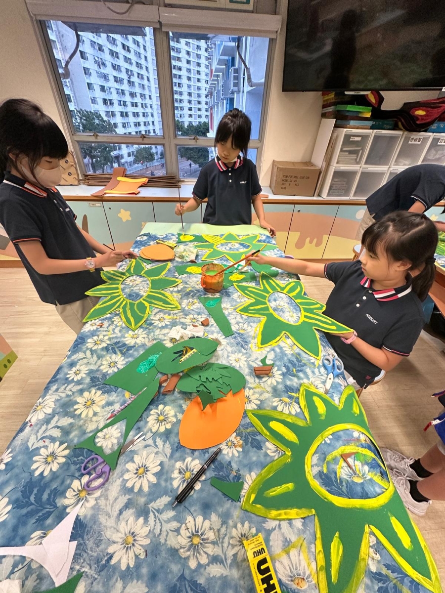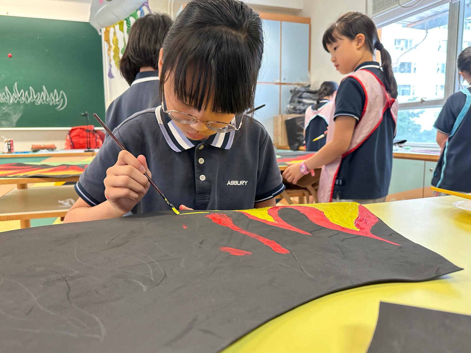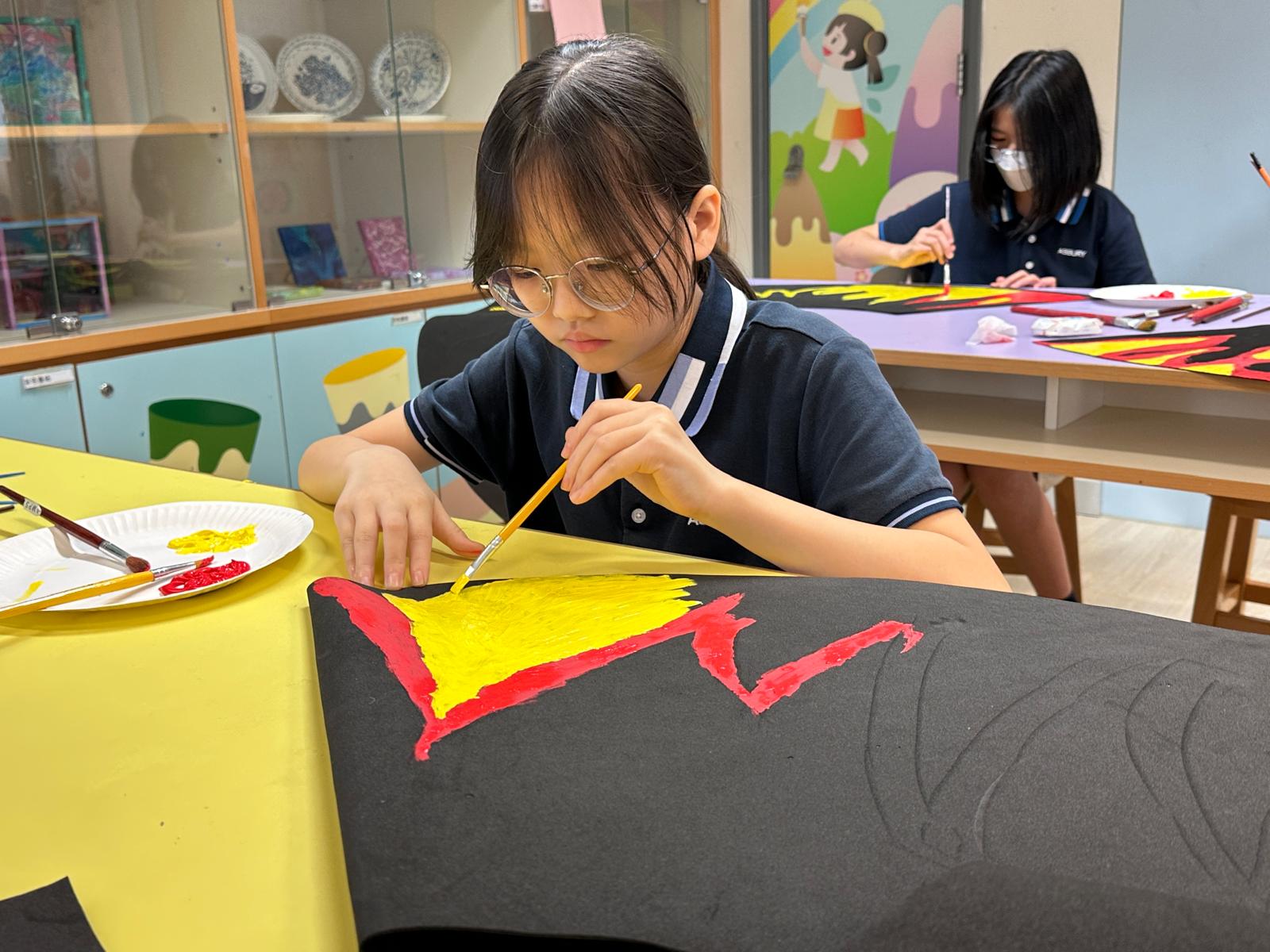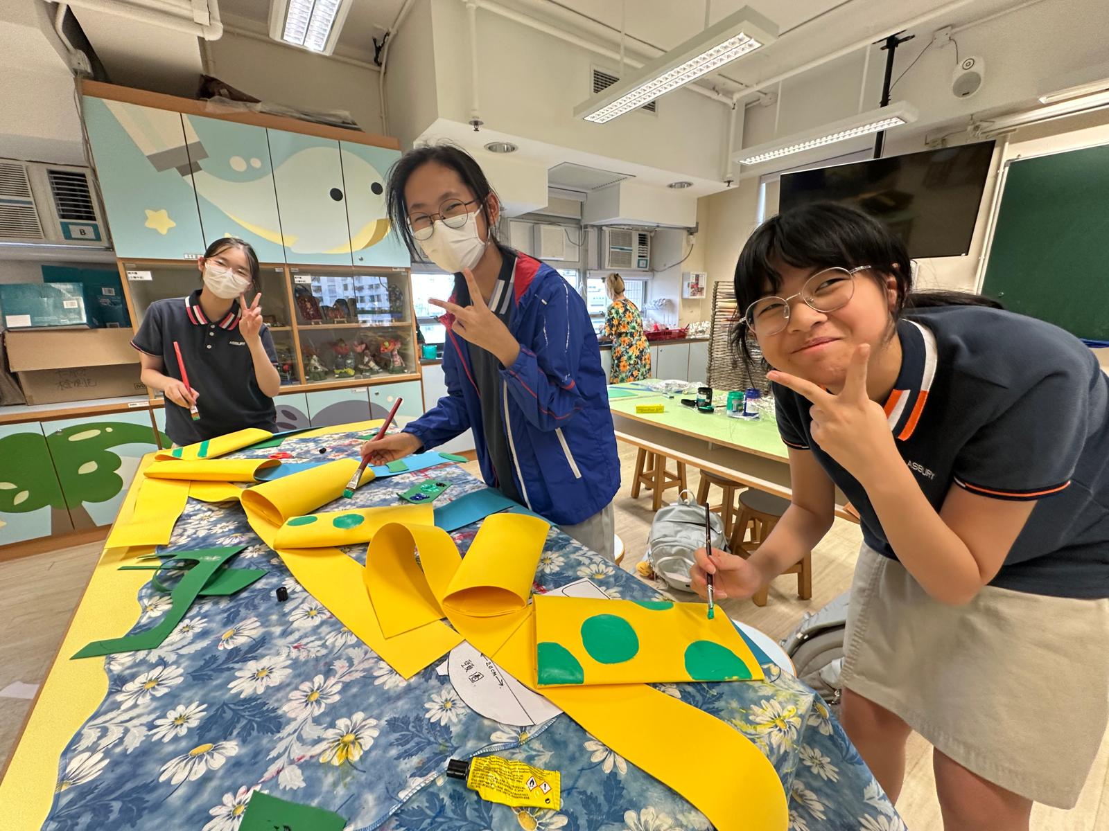 於藝術週內,校園滿佈豐富的作品,同學彷彿進入了奇趣的故事空間,觀摩彼此創作時的線條運用及用色技巧。