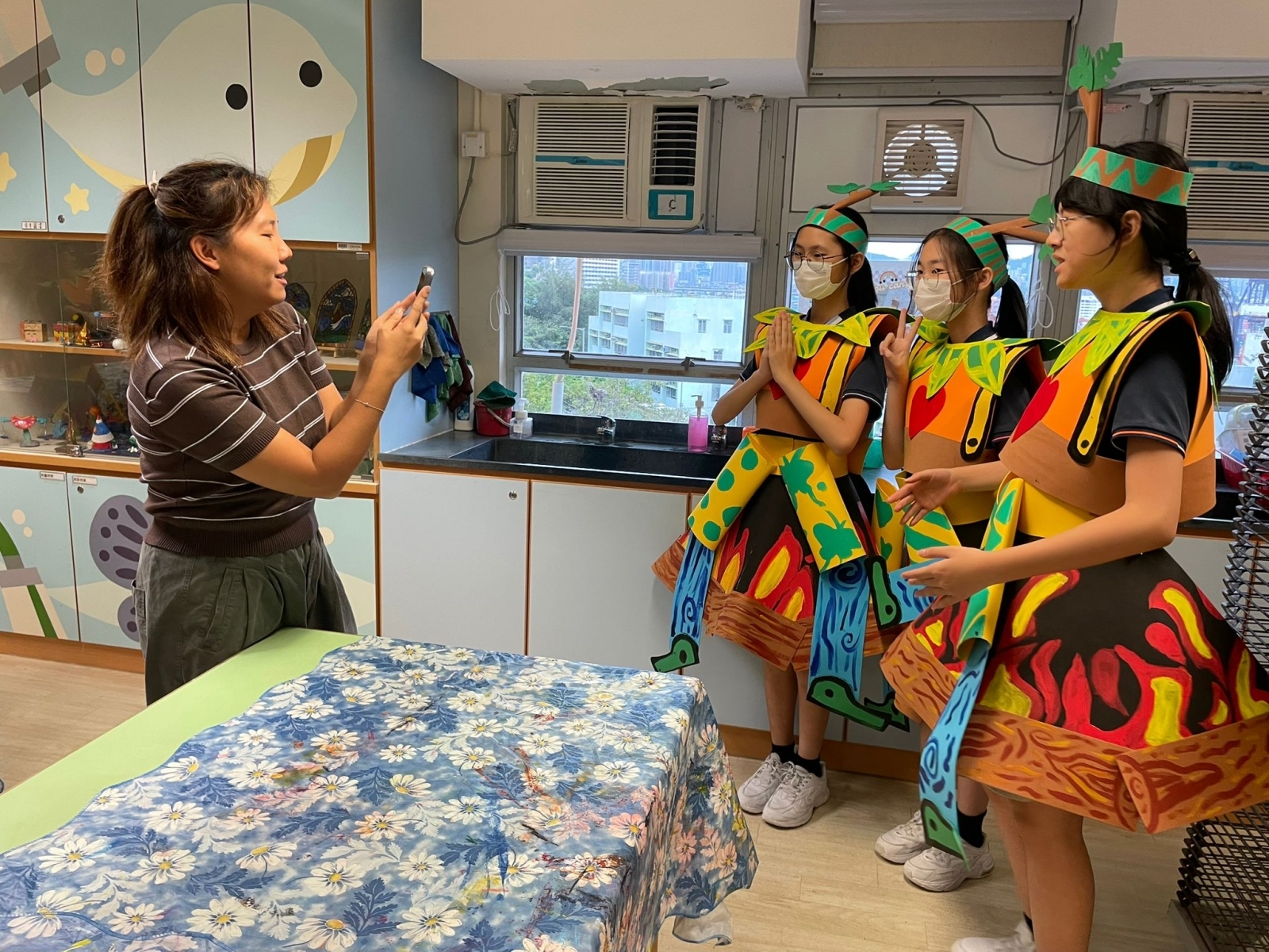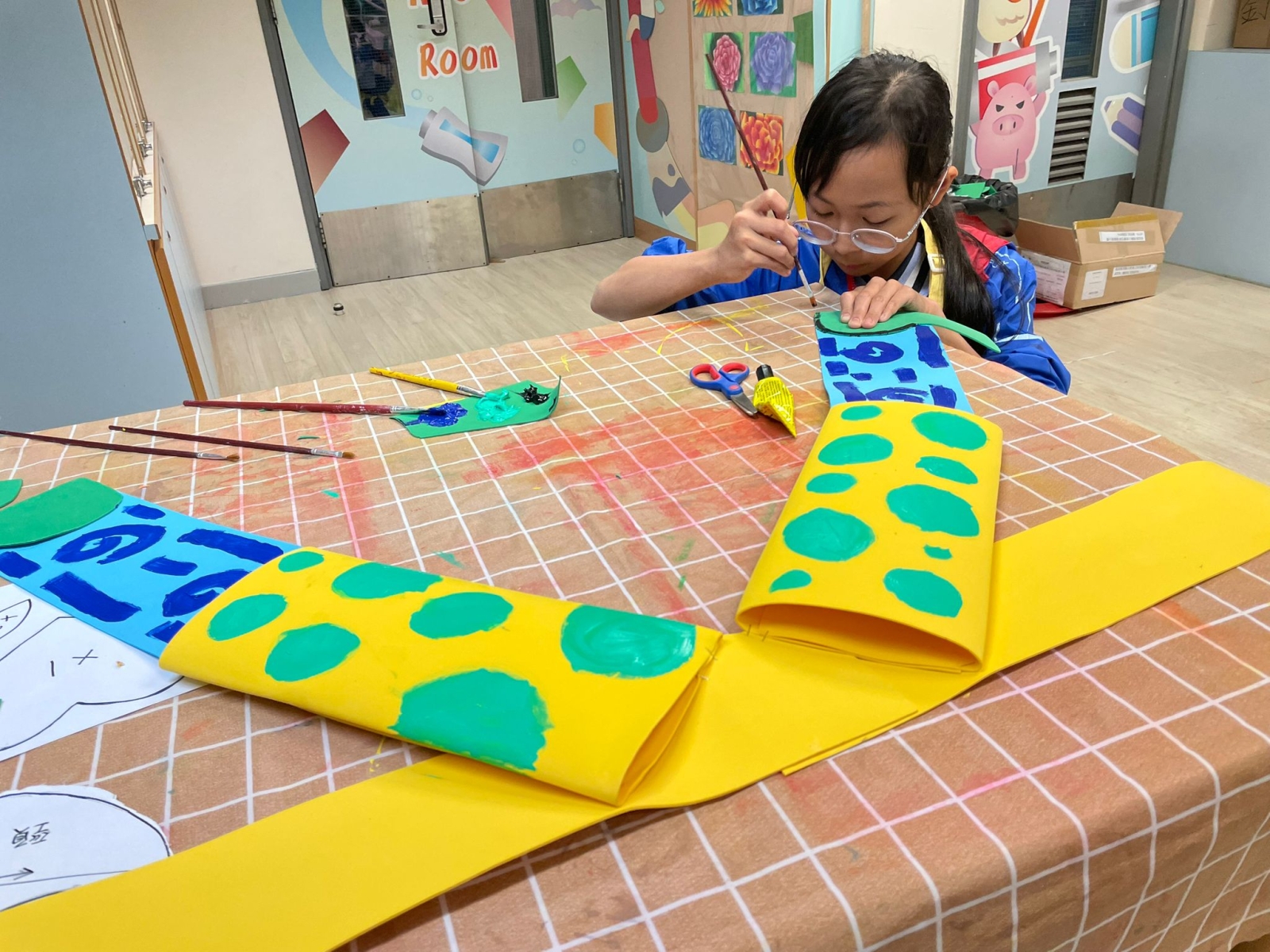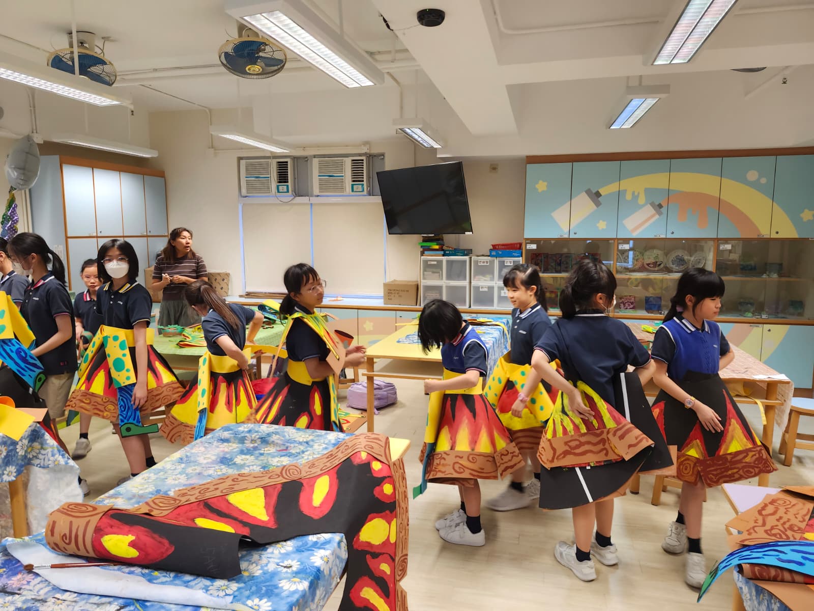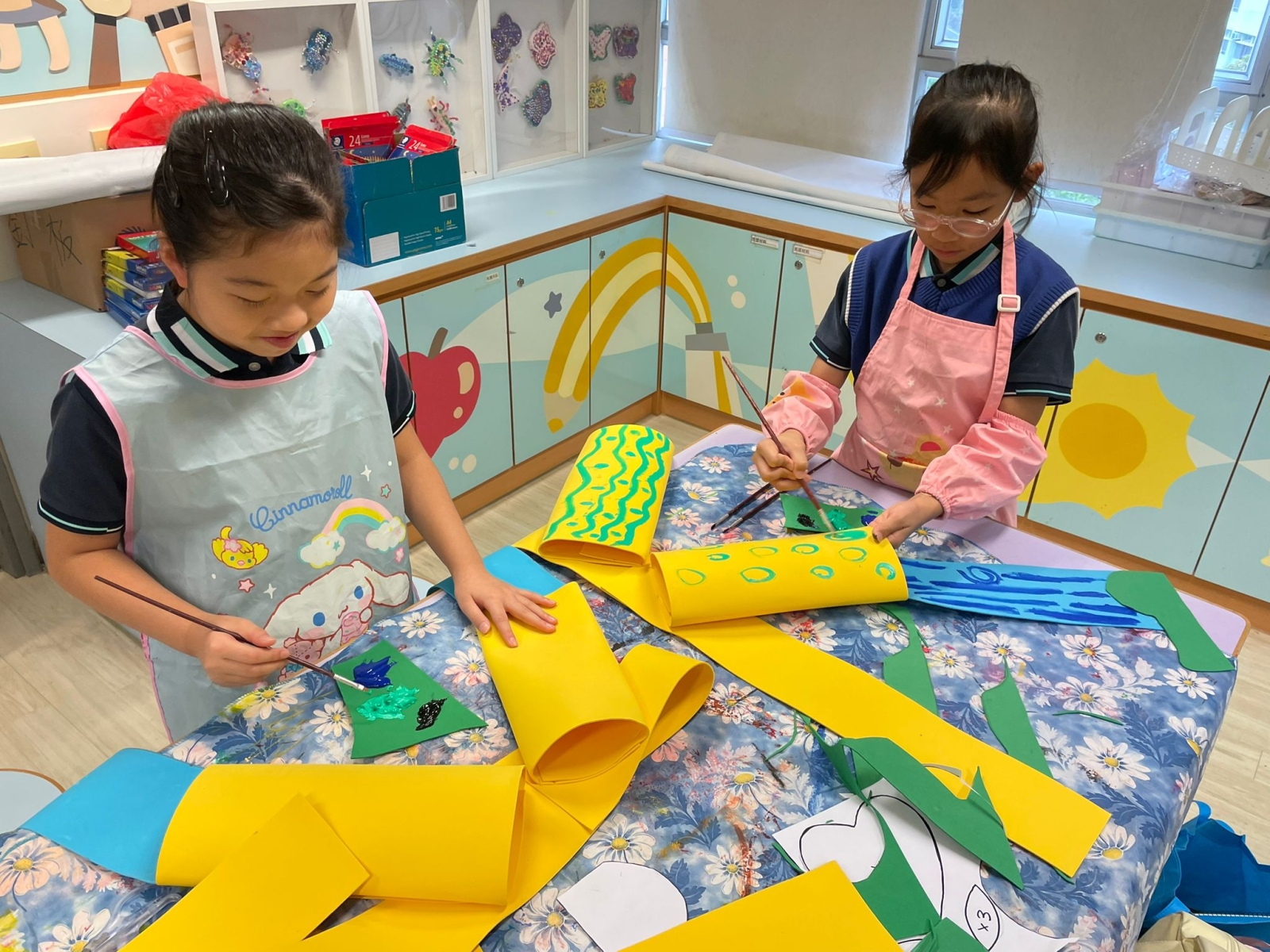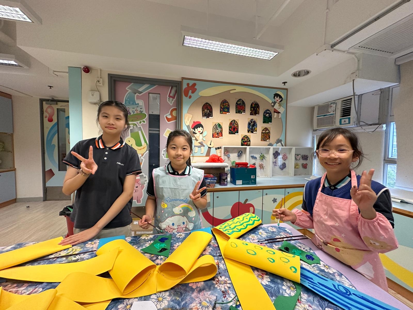 於藝術週內,校園滿佈豐富的作品,同學彷彿進入了奇趣的故事空間,觀摩彼此創作時的線條運用及用色技巧。
