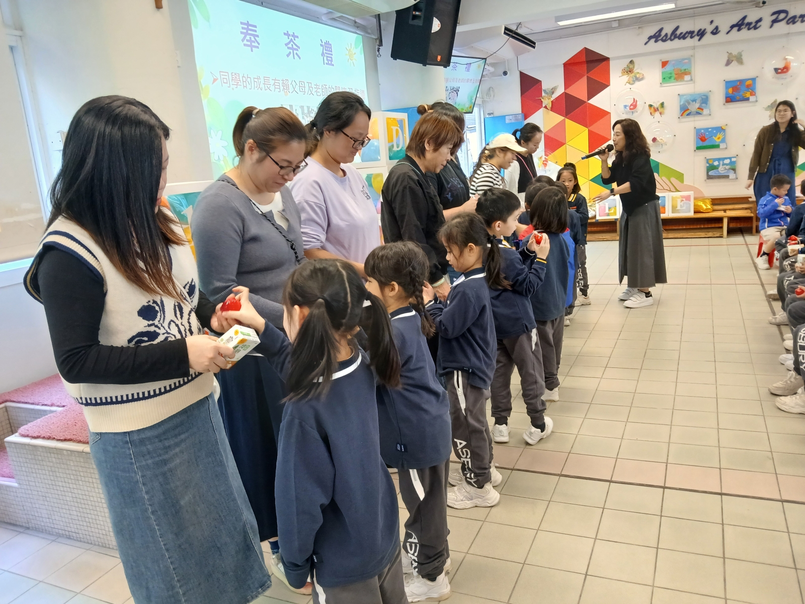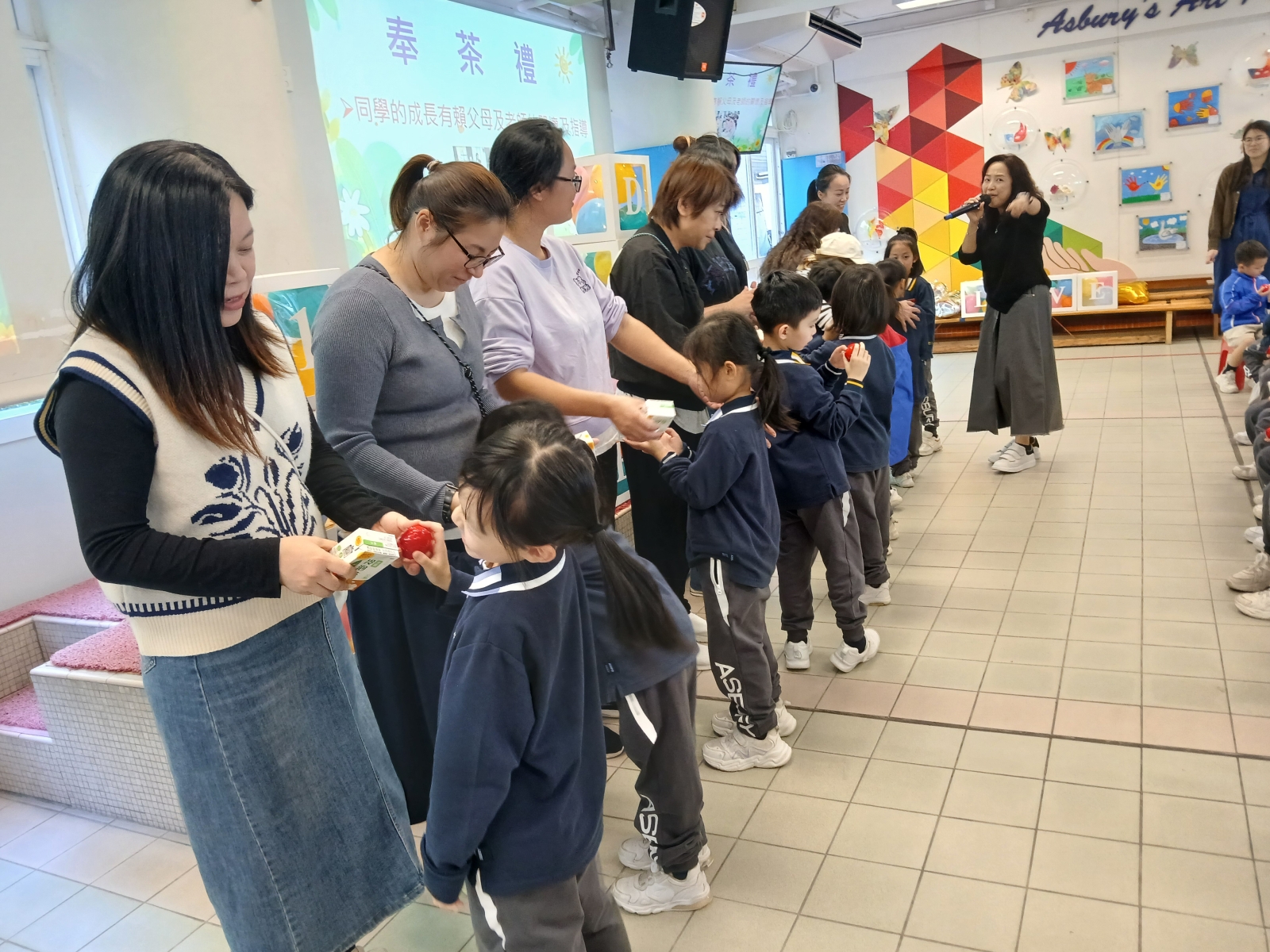 最後小一同學向家長進行「奉茶禮」,體現「孝順」的中國傳統美德,我們希望「百日宴」能發揮同學對師長「感恩」的價值態度。
