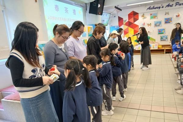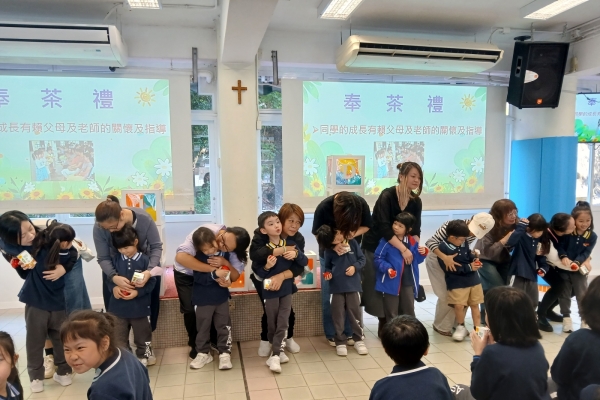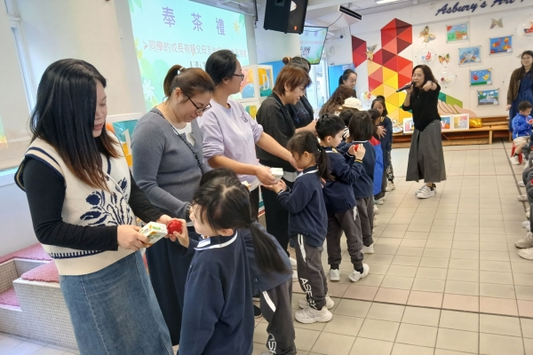 最後小一同學向家長進行「奉茶禮」,體現「孝順」的中國傳統美德,我們希望「百日宴」能發揮同學對師長「感恩」的價值態度。