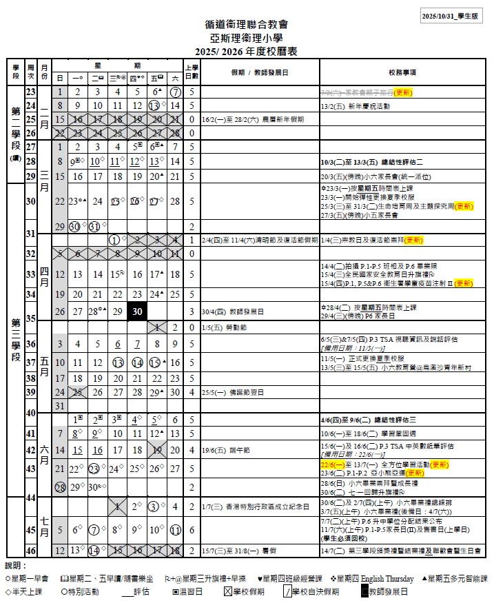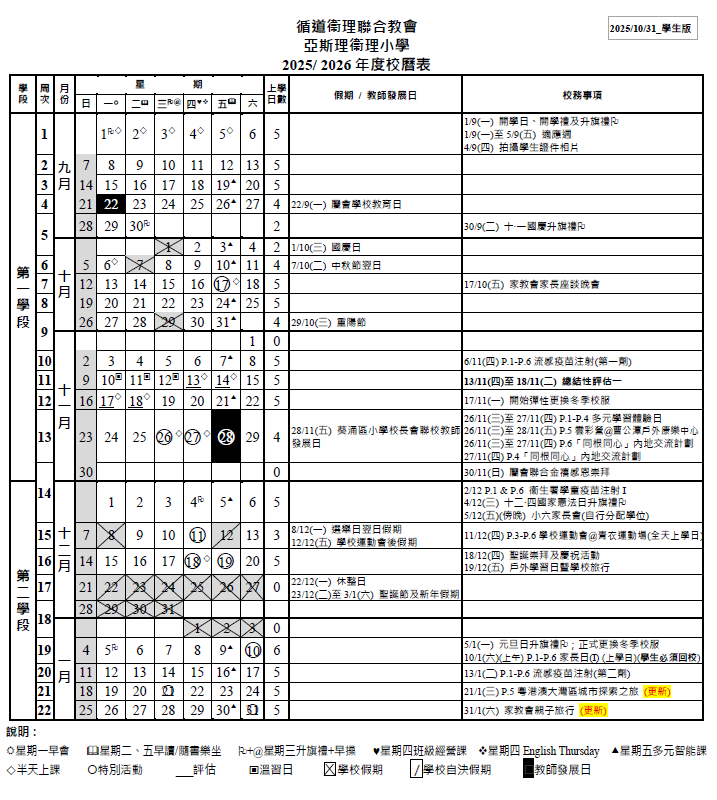 校曆表
