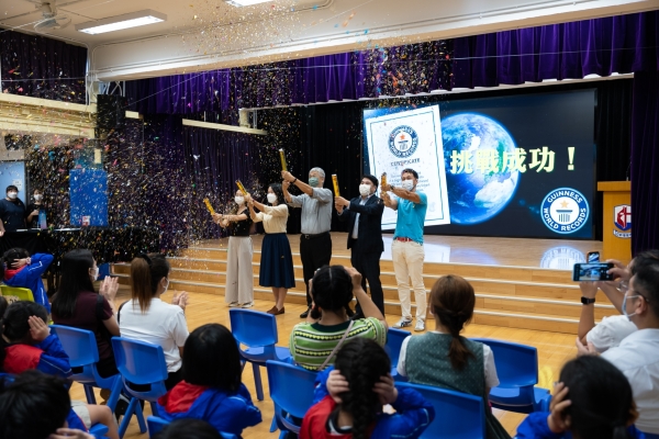 高小組則以「解難方法與策略」作主題,學生與老師團隊協作,嘗試以骨牌挑戰健力士世界紀錄!經過亞小師生的不懈努力,